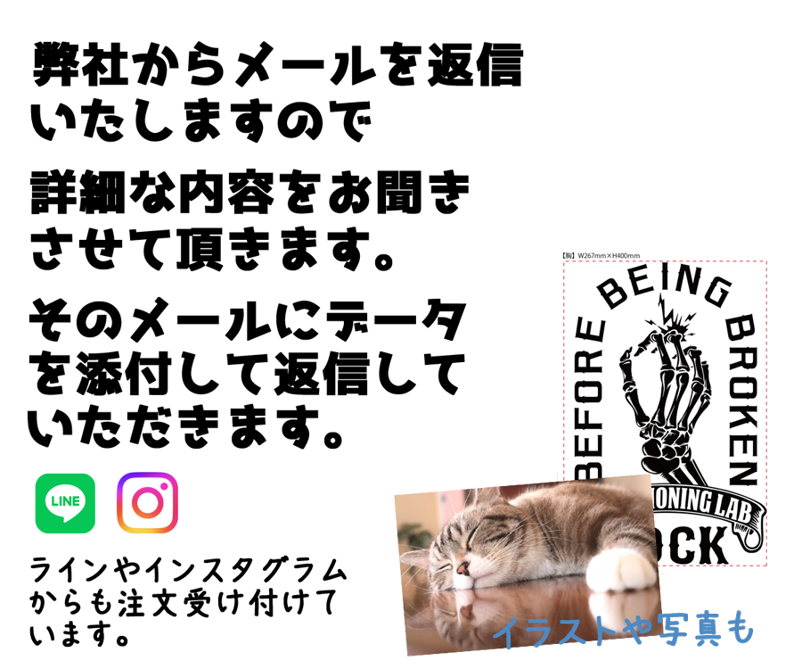 ※この時点ではイメージデザインの作成は行っておりません。 ご注文内容が確定し、プリント用の画像をお送りいただいてからデザインの作成を開始いたします。