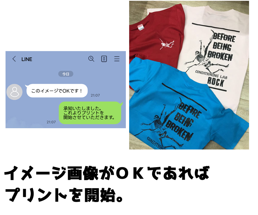 仕上がりイメージに「OK」のお返事をいただき、 (代引き以外の場合は)ご入金の確認後にプリントを開始いたします。